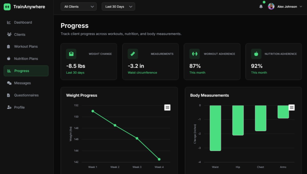 As demand for remote fitness grew, trainers needed a simpler way to manage clients online. TrainAnywhere was built to centralize workouts, nutrition plans, and communication in one efficient platform.